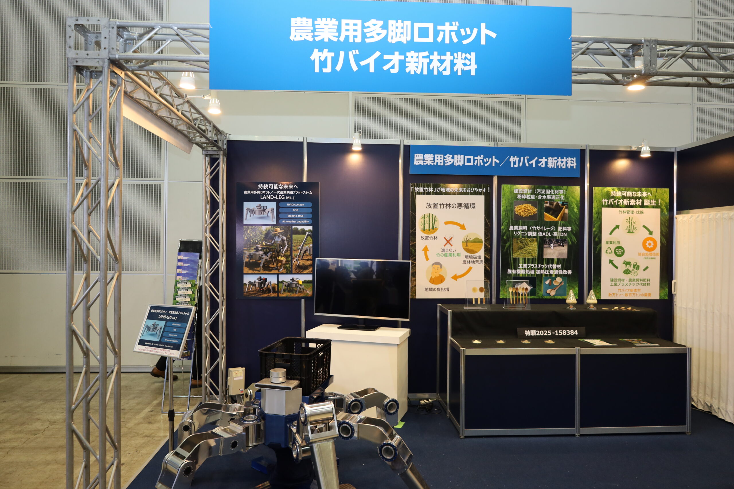 当社ブースでは、「非人型多脚農作業支援ロボットのプロトタイプ」を初披露し、一次産業の高負荷作業から人を解放する未来の姿をご紹介いたしました。